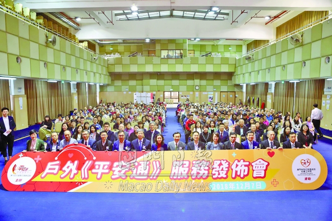 昨日下午三時,街坊總會在該會社服大樓六樓舉行發佈會介紹該項服務內容,社會文化司司長譚俊榮、社工局長黃艷梅、中聯辦社會工作部處長姜正宇、治安警察局行動廳代廳長李鏡賢、消防局副局長鄒家昌、行政暨公職局公職福利處長梁少峰、鏡湖醫院院長馬學章、銀河娛樂集團董事會副主席呂耀東、澳電商業服務拓展及方案總監黃永儉、弱智人士家長協進會副理事長葉國根、澳門公共汽車股份有限公司副總經理鄭炳燦、新福利公共汽車有限公司營運總監鄭建中,在街坊總會會長梁慶球陪同下主持服務啟動儀式。