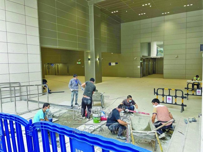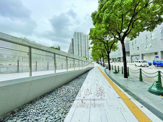 青茂口岸(粵澳新通道)主體工程今年五月竣工,現正壓力測試。昨日仍見口岸地面層有工作人員埋尾施工。口岸對面的停車場周邊道路、無障礙設施基本完成,有工人清理水馬等雜物。附近一帶步行環境舒適,綠樹成蔭,行人道寬闊,前往青洲坊大廈、筷子基等的指示尚算清晰。