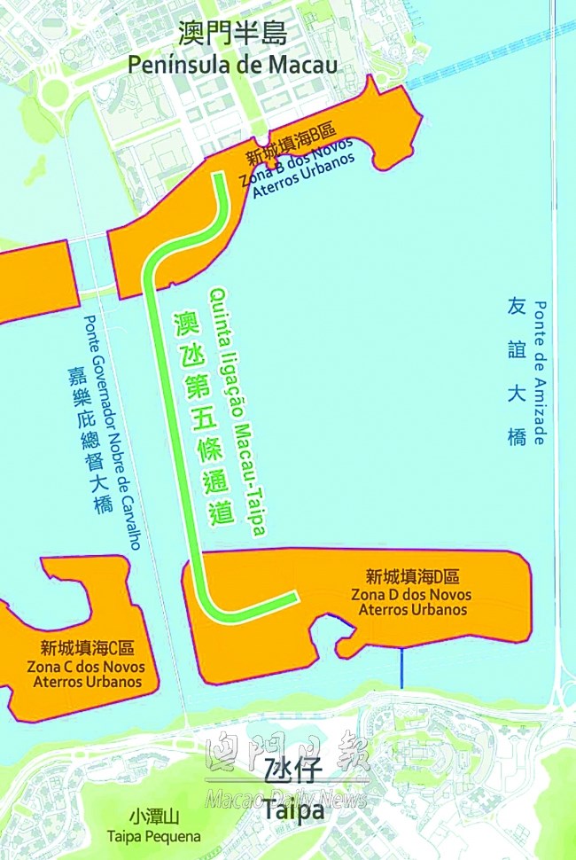 嘉樂庇總督大橋旁興建海底隧道工程(即澳氹第五條通道)環境影響評價由日前起進行為期兩周的第二階段公示。是次環境影響報告書共二百九十一版,何潤生認為報告內容全面,評價參照世衛組織及歐盟香港標準,各項數據參照清晰。第四跨海通道現正進行第二階段評審標書及判給工作,工期在政府招標公告中規定為一千四百四十個工作日,而當局曾公佈第五通道工程整體工期為八百天,預料兩跨海通道工程會有所重疊。