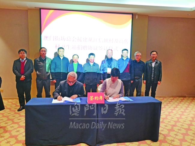 考察團一行三十餘人前日下午在中聯辦社工部部長級助理楊漢武、副處長陳靖楓陪同下抵達從江縣,先前往街坊總會捐建的信地村、高傳村兩所衛生站項目實地考察,獲當地居民熱烈歡迎和親切接待。昨日上午,考察團與從江社會服務領域代表舉行交流座談會,探討如何更好地支持內地扶貧事業發展。援建項目協議簽訂儀式於昨日下午三時半舉行,由街坊總會理事長吳小麗、仁慈堂秘書長盧茜儀分別代表街坊總會及社服界,與澳門紅十字會主席黃如楷簽署協議。